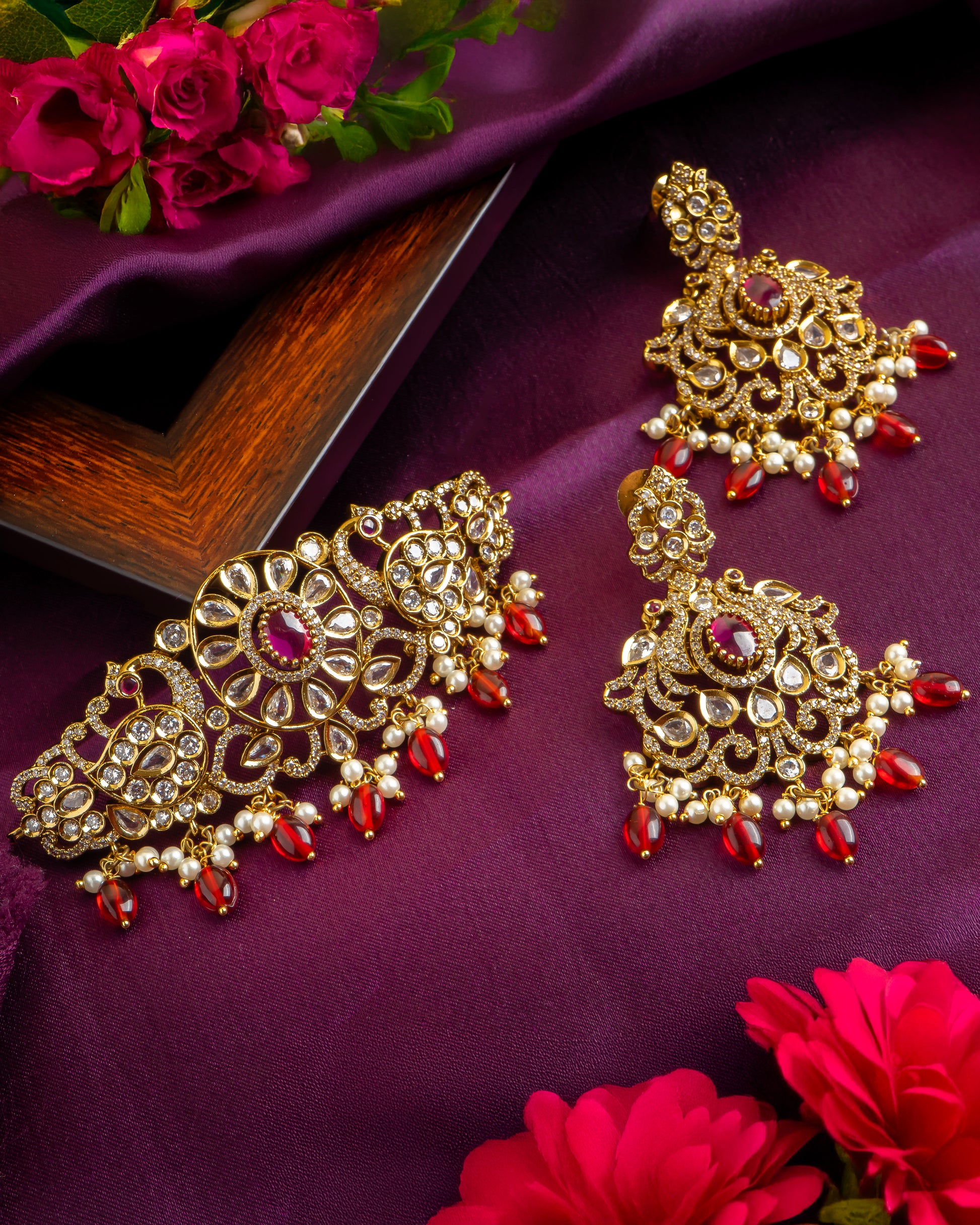 Shine like royalty with this exquisite Victorian Mini Choker Set, crafted with sparkling stones, red ruby accents, and delicate pearl drops. The bold choker design comes with matching heavy earrings, making it a statement piece for weddings, receptions, and festive occasions.With its intricate craftsmanship and regal finish, this choker set pairs beautifully with sarees, lehengas, and bridal attire for a timeless and elegant look.
